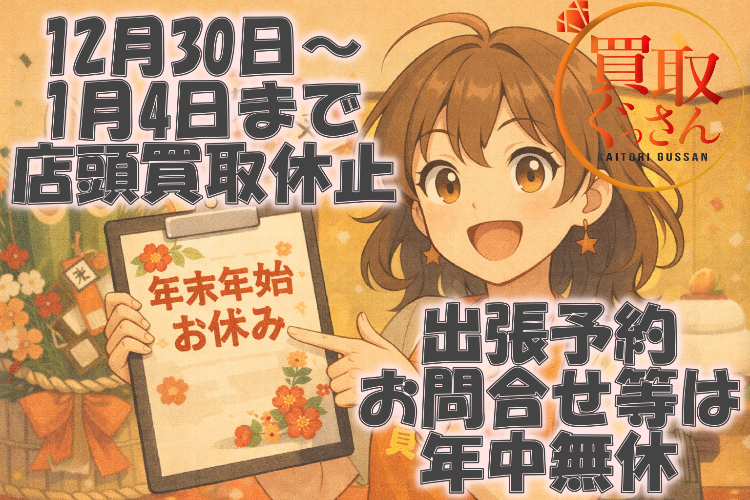 12月30日〜1月4日まで店頭買取の受付はお休み とさせていただきます。